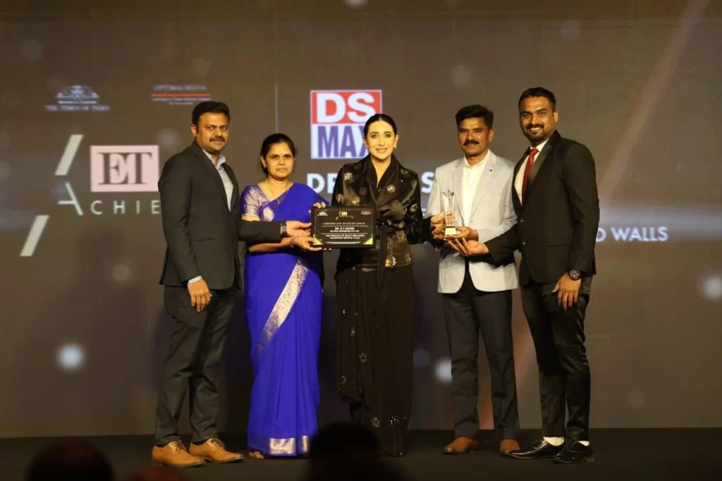 The DS-MAX Group is thrilled to announce a truly monumental achievement. ๐Ž๐ฎ๐ซ ๐ฏ๐ข๐ฌ๐ข๐จ๐ง๐š๐ซ๐ฒ ๐…๐จ๐ฎ๐ง๐๐ž๐ซ & ๐‚๐ก๐š๐ข๐ซ๐ฆ๐š๐ง, Dr KV Satish, has been honored with the industry’s ultimate recognition: “๐“๐ก๐ž ๐๐ข๐ง๐ง๐š๐œ๐ฅ๐ž ๐จ๐Ÿ ๐‘๐ž๐š๐ฅ๐ญ๐ฒ ๐๐ซ๐ข๐ฅ๐ฅ๐ข๐š๐ง๐œ๐ž – ๐ˆ๐๐’๐๐ˆ๐‘๐€๐“๐ˆ๐Ž๐ ๐๐„๐˜๐Ž๐๐ƒ ๐–๐€๐‹๐‹๐’,” at the prestigious Economic Times Awards.