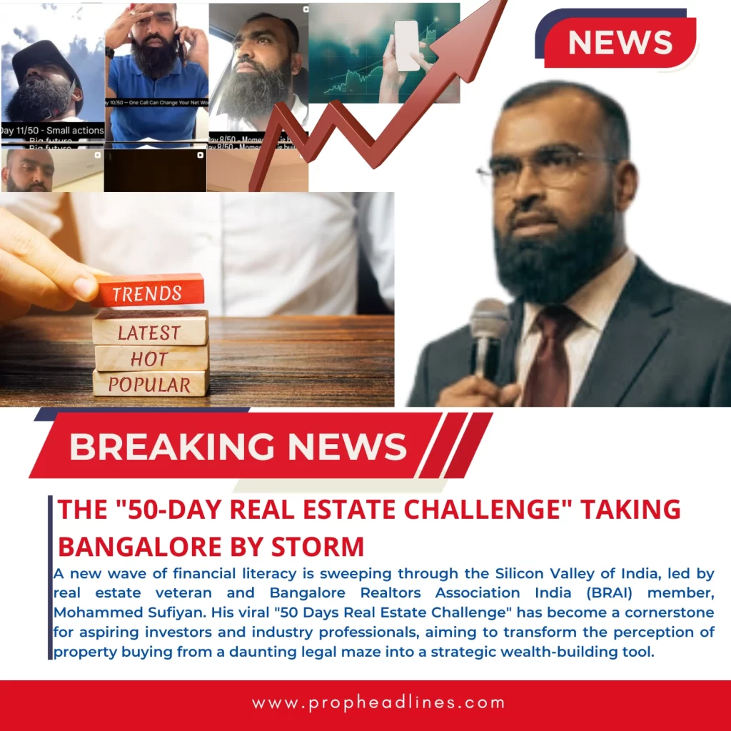 A new wave of financial literacy is sweeping through the Silicon Valley of India, led by real estate veteran and Bangalore Realtors Association India (BRAI) member, Mohammed Sufiyan. His viral initiative, the “50 Days Real Estate Challenge,” has quickly become a cornerstone for aspiring investors and industry professionals alike.