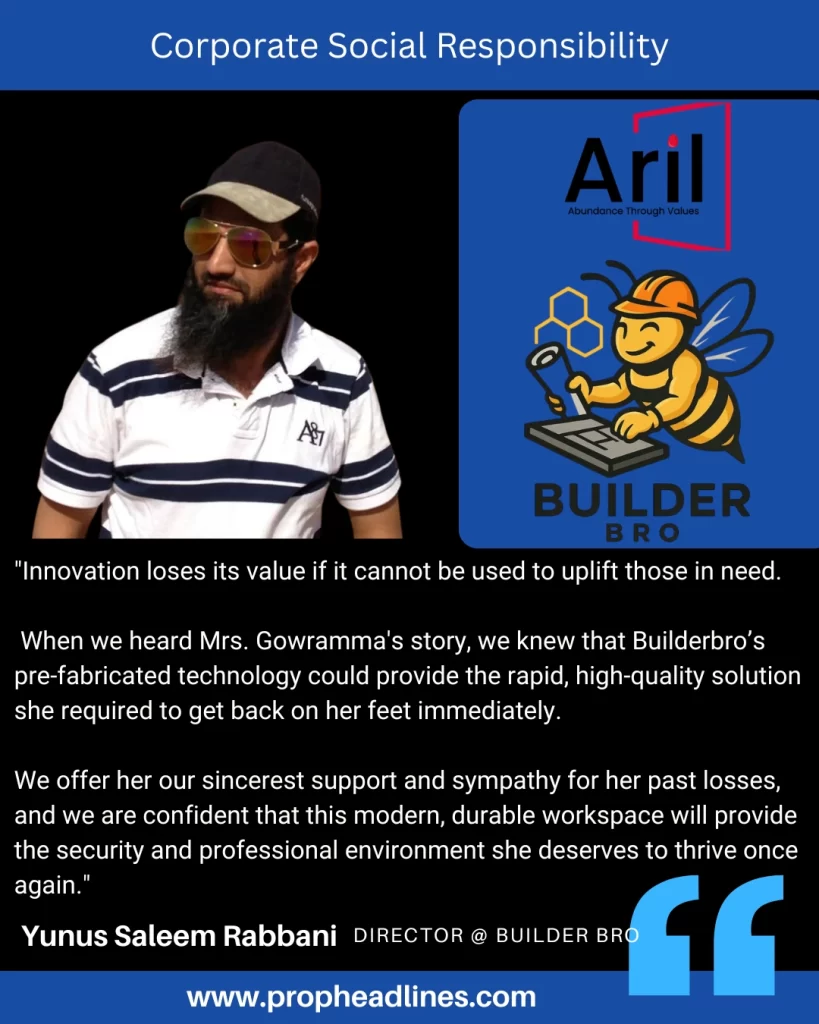 BENGALURU – In a heartening display of corporate empathy and community support, real estate developer Aril Gardens and construction technology firm Builderbro have jointly gifted a state-of-the-art pre-fabricated hotel stall to Mrs. Gowramma, a local entrepreneur seeking to rebuild her life after a series of devastating setbacks.