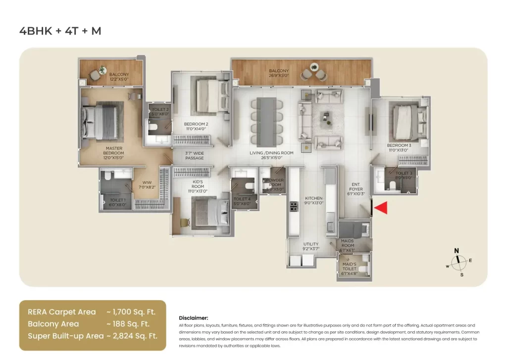 Average Unit Size: Starting at 1,850 sq. ft. for a 3BHK, these units are roughly 30% larger than the industry average in this price bracket.