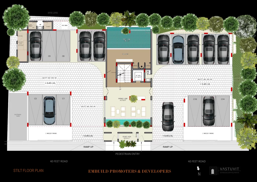 Infrastructure: The site is well-connected by a 40-foot wide road and includes dedicated amenities such as a stilt floor for organized parking, a security kiosk, and a gas bank.