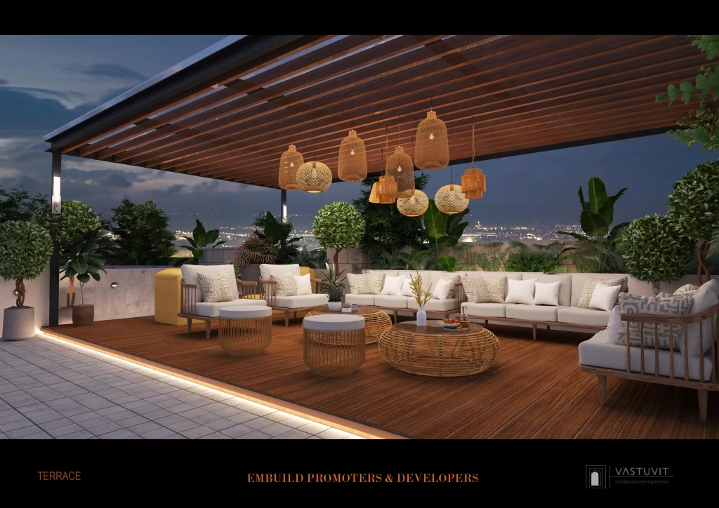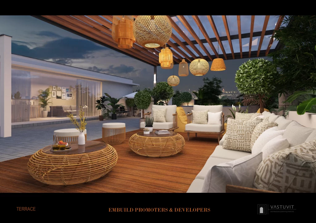 Modern Lifestyle Amenities: Residents will have access to a Yoga Pavilion, OTS Seating, Pergola Seating, and a Multipurpose area on the terrace level.
