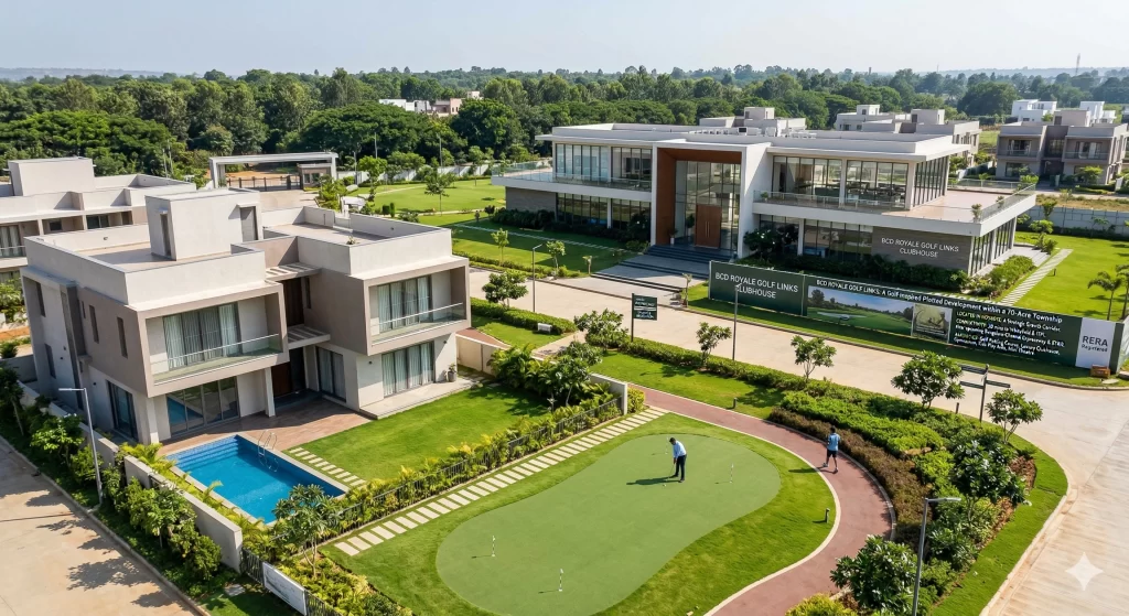 BCD Royale Golf Links is a premium gated community development located in Hoskote, East Bangalore. It is part of the larger 70-acre BCD City integrated township. The project is designed as a luxury “Golf-inspired” plotted development, targeting both end-users looking for an elite lifestyle and investors seeking high appreciation in the “Neo Bangalore” corridor.